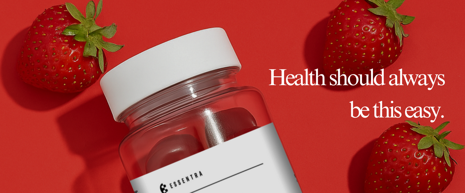 EssentraVita Gummies are your baseline for better health: a delicious, chewable blend of 13 key vitamins including C, D, E, and B-complex, designed to fill common nutritional gaps without the hassle.